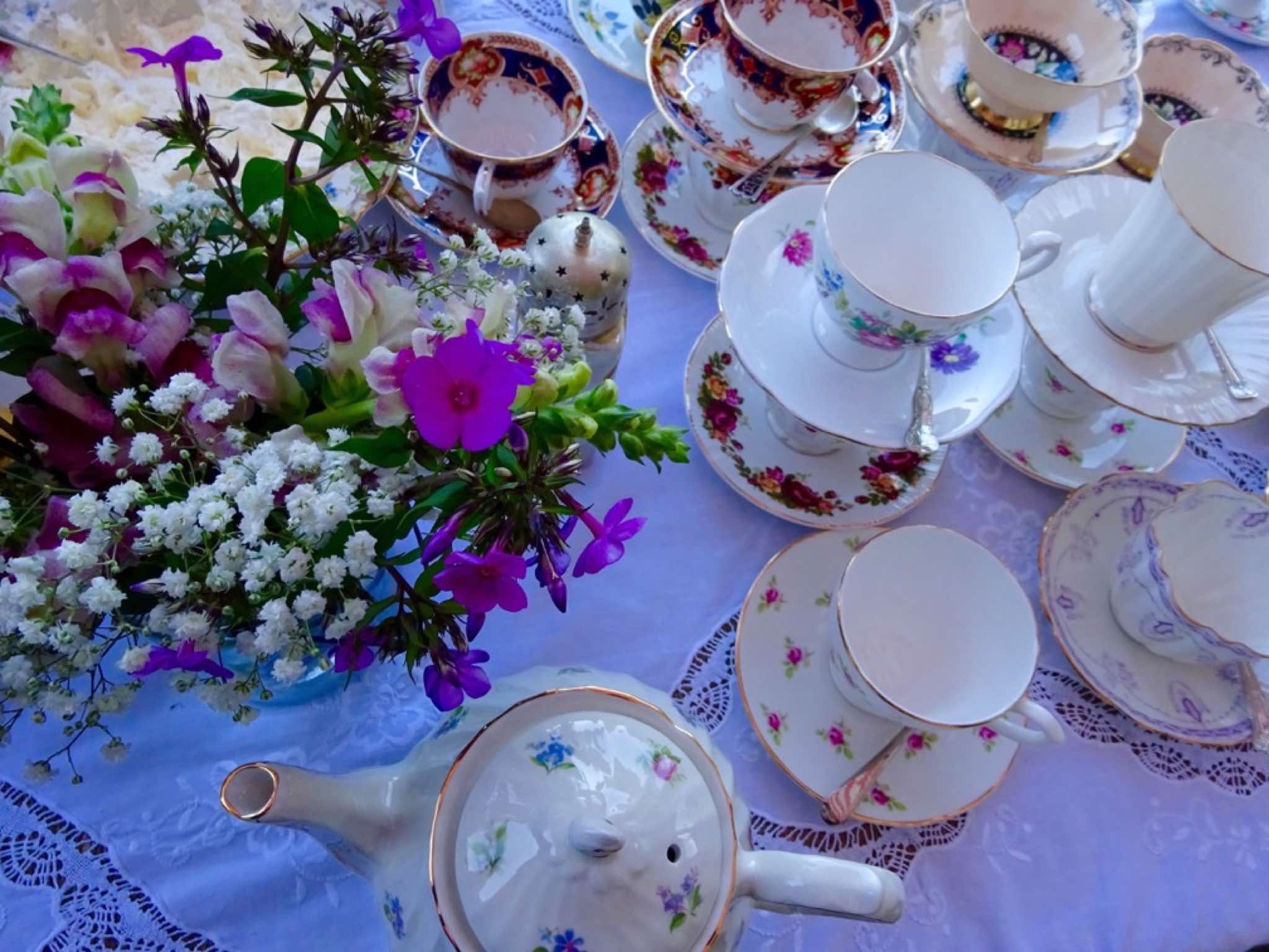 Homemade sandwiches, cakes, and scones served on beautiful vintage china with linen tablecloths and napkins – and, of course, endless pots of tea.